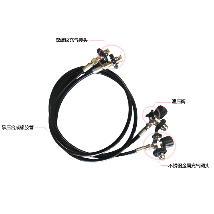 膠管承壓力高,脈沖性能優(yōu)越,非常適合作為高壓氣瓶和空氣壓縮機(jī)之間的輸氣通路使用